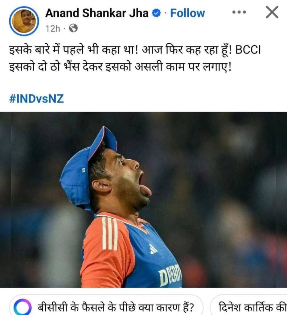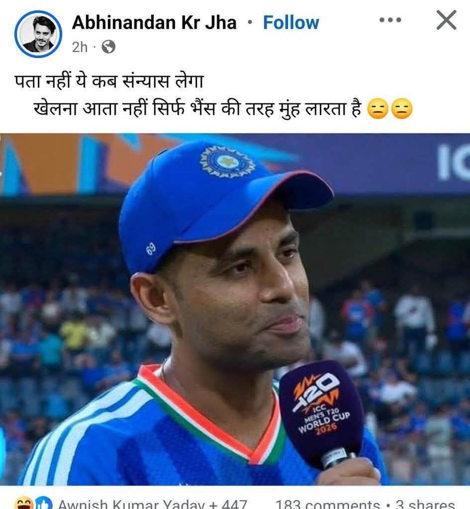 हाल ही में सोशल मीडिया पर ‘झा जी’ जैसे कुछ आलोचकों ने सूर्यकुमार यादव की कप्तानी और उनकी पृष्ठभूमि को लेकर बेहद आपत्तिजनक टिप्पणी की है। एक वायरल पोस्ट में उन्हें “भैंस चराने भेजने” तक की बात कही गई है। सवाल यह है कि क्या यह आलोचना खेल पर आधारित है या इसके पीछे कोई गहरी सामाजिक कुंठा छिपी है?