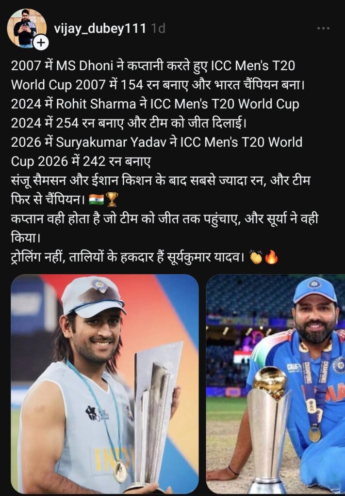 विशेषज्ञ की राय: “सूर्या ने अपनी कप्तानी में न सिर्फ वर्ल्ड कप जीता, बल्कि टीम में एक ऐसा माहौल बनाया जहाँ हर खिलाड़ी सुरक्षित महसूस करता है। उनके खिलाफ इस तरह की भाषा खेल की समीक्षा नहीं, बल्कि व्यक्तिगत द्वेष है।”