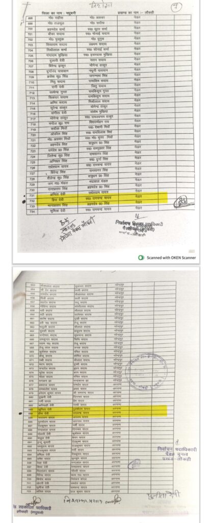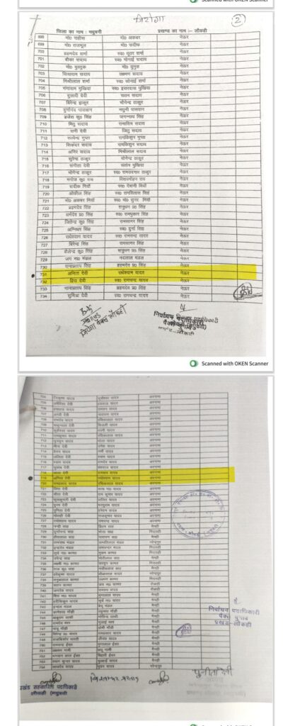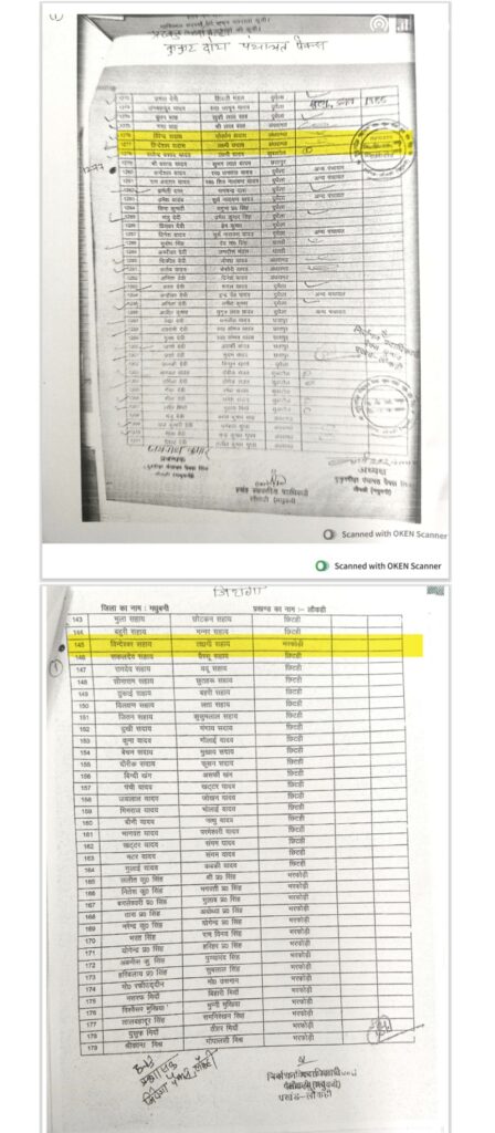 हीरा देवी (पति: स्वर्गीय रामचंद्र यादव): इनका नाम भी अवैध तरीके से दो सूचियों में दर्ज पाया गया है।